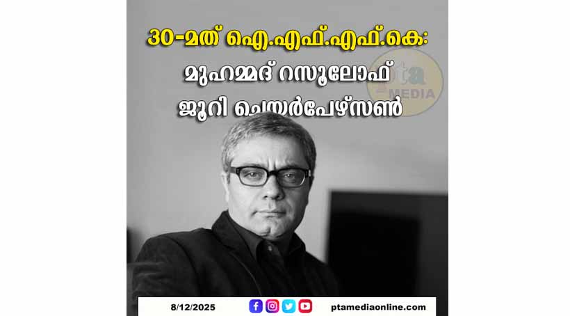 തിരുവനന്തപുരം – വിഖ്യാത ഇറാനിയൻ സംവിധായകൻ മുഹമ്മദ് റസൂലോഫ് 30ാമത് ഐ.എഫ്.എഫ്.കെയിലെ മൽസരവിഭാഗത്തിന്റെ ജൂറി ചെയർപേഴ്സൺ ആയി പ്രവർത്തിക്കും. കഴിഞ്ഞ വർഷത്തെ കാൻ ചലച്ചിത്രമേളയിൽ നാല് പുരസ്കാരങ്ങൾ നേടിയ ‘ദ സീഡ് ഓഫ് ദ സേക്രഡ് ഫിഗ്’ ഉൾപ്പെടെ നാലു ചിത്രങ്ങളിലൂടെ എട്ട് പുരസ്കാരങ്ങൾ കാൻ മേളയിൽനിന്ന് തന്നെ നേടിയ അപൂർവം സംവിധായകരിലൊരാളാണ് റസൂലോഫ്. ബെർലിൻ മേളയിലെ ഗോൾഡൻ ബെയർ, ഗോവ ചലച്ചിത്രമേളയിലെ സുവർണമയൂരം, ഷിക്കാഗോ ഫെസ്റ്റിവലിലെ സിൽവർ ഹ്യൂഗോ തുടങ്ങി നിരവധി അന്താരാഷ്ട്ര അംഗീകാരങ്ങൾ നേടിയ റസൂലോഫിനെ 2025ൽ ലോകത്തെ ഏറ്റവും സ്വാധീനശക്തിയേറിയ 100 വ്യക്തികളിലൊരാളായി ടൈം മാഗസിൻ തെരഞ്ഞെടുത്തിട്ടുണ്ട്.