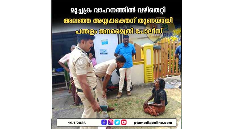 പന്തളം – ശബരിമല അയ്യപ്പ ദർശനം കഴിഞ്ഞ് നാട്ടിലേക്ക് മടങ്ങും വഴി കൂട്ടം തെറ്റി അലഞ്ഞ അയ്യപ്പഭക്തന് പന്തളം ജനമൈത്രി പോലീസ് താങ്ങും തണലുമായി മാറി. ജന്മനാ രണ്ടു കാലുകളും തളർന്ന ആന്ധ്രപ്രദേശ് വിശാഖപട്ടണം സ്വദേശിയായ 45 വയസുകാരനായ മണികണ്ഠൻ എന്ന സ്വാമി നാട്ടിൽ നിന്നും മൂന്നുമാസം മുമ്പ് മുച്ചക്ര സൈക്കിളിൽ യാത്ര തിരിച്ച് ദർശനത്തിനു ശേഷം തിരികെ നാട്ടിലേക്ക് മടങ്ങും വഴി കൂട്ടം തെറ്റുകയായിരുന്നു. കൂട്ടം പിരിഞ്ഞ് ഭക്ഷണത്തിനും യാത്രയ്ക്കും പണമില്ലാതെ പരവശനായി കൈകൊണ്ട് കറക്കി ചവിട്ടി പോകുന്ന മുച്ചക്രസൈക്കിളിൽ യാത്ര തുടരാൻ കഴിയാതെ അവശനായി പന്തളം പോലീസ് സ്റ്റേഷൻപരിധിയിൽപ്പെട്ട പറന്തൽ എന്ന സ്ഥലത്ത് റോഡിൽ കഴിഞ്ഞദിവസം കുഴഞ്ഞു വീഴുകയായിരുന്നു. വിവരമറിഞ്ഞ് എത്തിയ പന്തളം ജനമൈത്രി പോലീസ് വേണ്ട സഹായങ്ങൾ നല്കുകയും കൂടെയുളള സ്വാമിമാരെ അന്വേഷിച്ച് കണ്ടെത്തുകയുമായിരുന്നു. പന്തളം പോലീസ് സ്റ്റേഷൻ സബ് ഇൻസ്പെക്ടർ യു.വി വിഷ്ണു, ജനമൈത്രി ബീറ്റ് ഓഫീസർ എസ്. അൻവർഷ ,ജനമൈത്രിസമിതിയംഗം റജി പത്തിയിൽ , അയ്യപ്പ സമാജം ഭാരവാഹി വേണു എന്നിവരുടെ നേതൃത്വത്തിൽ മണികണ്ഠനെ സുരക്ഷിതമായി വാഹനത്തിൽ ചെങ്ങന്നൂരിൽ എത്തിച്ച് കൂടെയുളള സ്വാമിമാർക്ക് കൈമാറി.