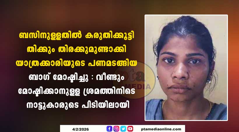ബസിനുള്ളതിൽ കരുതിക്കൂട്ടി തിക്കും തിരക്കുമുണ്ടാക്കി യാത്രക്കാരിയുടെ പണമടങ്ങിയ ബാഗ് മോഷ്ടിച്ചു : വീണ്ടും മോഷ്ടിക്കാനുള്ള ശ്രമത്തിനിടെ നാട്ടുകാരുടെ പിടിയിലായി