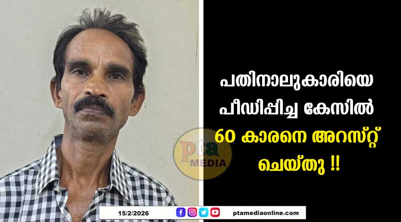 തിരുവല്ല – പെരിങ്ങര അഴിയടത്ത് ചിറ സ്വദേശി കരിങ്ങാട്ടിശ്ശേരി വീട്ടിൽ കൊച്ചുമോൻ എന്ന് വിളിക്കുന്ന വർഗീസ് (60) നെയാണ് അറസ്റ്റ് ചെയ്തത്. 2025 മെയ് മാസത്തിലെ വെക്കേഷൻ സമയത്താണ് കേസിന് ആസ്പദമായ സംഭവം. പെയിന്റിംഗ് തൊഴിലാളിയായ ഇയാൾ ജോലി ചെയ്ത വീട്ടിൽ വന്ന പെൺകുട്ടിയെ ഭീഷണിപ്പെടുത്തി ലൈംഗികമായി ഉപദ്രവിക്കുകയായിരുന്നു. ഇപ്പോൾ വീണ്ടും കുട്ടിയെ പിന്തുടർന്ന് ഉപദ്രവിക്കാൻ ശ്രമിച്ചതോടെ അമ്മയോടും ബന്ധുക്കളോടും കുട്ടി വിവരം പറഞ്ഞു.കുട്ടിയുടെ മൊഴി രേഖപ്പെടുത്തി കേസ് രജിസ്റ്റർ ചെയ്ത തിരുവല്ല പോലീസ് പെരിങ്ങരയിൽ നിന്നും പ്രതിയെ പിടികൂടി. ഇൻസ്പെക്ടർ SHO സുജിത്ത് KS, ASI ജയകുമാർ, CPO മാരായ അഖിലേഷ്, അവിനാഷ് , സോജോ എന്നിവർ അടങ്ങിയ അന്വേഷണ സംഘമാണ് പ്രതിയെ പിടികൂടിയത്.ശനിയാഴ്ച കോടതിയിൽ ഹാജരാക്കിയ പ്രതിയെ റിമാൻഡ് ചെയ്തു