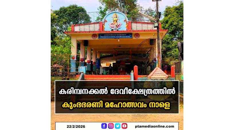 മേലെ വെട്ടിപ്പുറം – കരിമ്പനക്കൽ ദേവീക്ഷേത്രത്തിൽ കുംഭഭരണി മഹോത്സവം നാളെ തിങ്കളാഴ്ച്ച രാവിലെ 7 .30 അഖണ്ഡ സർവ്വൈശ്വര്യപൂജ 11 മണിക്ക് പന്തീരാഴി പൂജ 12 മണിക്ക് ഭരണിസദ്യ എന്നിവയുണ്ടായിരിക്കും.