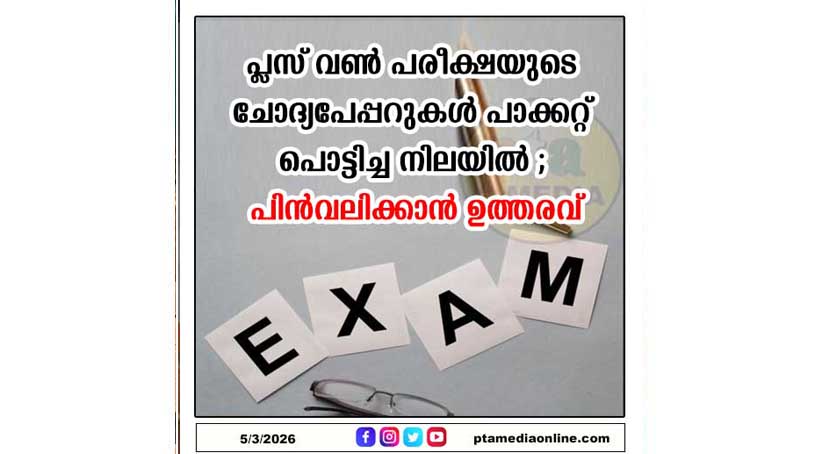 പ്ലസ് വൺ പരീക്ഷയുടെ ചോദ്യപേപ്പറുകൾ പാക്കറ്റ് പൊട്ടിച്ച നിലയിൽ ; പിൻവലിക്കാൻ ഉത്തരവ്