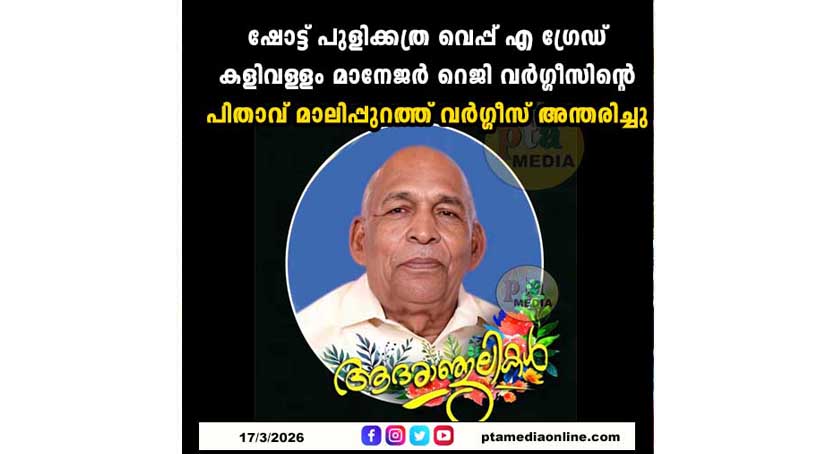 എടത്വ: മങ്കോട്ടച്ചിറയിൽ മാലിപുറത്ത് എം.സി വർഗ്ഗീസ് (87)നിര്യാതനായി. സംസ്ക്കാരം മാർച്ച് 19 വ്യാഴാഴ്ച 2 മണിക്ക് ഭവനത്തിലെ ശുശ്രുഷകൾക്ക് ശേഷം പാണ്ടൻങ്കരി സെന്റ് മേരീസ് ഓർത്തഡോക്സ് പള്ളി സെമിത്തേരിയിൽ. മാവേലിക്കര തോപ്പിൽ പടീറ്റതിൽ കുടുംബാംഗം ലീലാമ്മ വർഗ്ഗീസ് ആണ് ഭാര്യ. റോസമ്മ, സൂസൻ, ഷാജി, റെജി എന്നിവർ മക്കളും കുണ്ടറ പള്ളി വടക്കേതിൽ ബാബു, കൊട്ടാരക്കര ചരുവിളയിൽ എബ്രഹാം, ആശ, പരേതയായ നിധി എന്നിവർ മരുമക്കളുമാണ് .