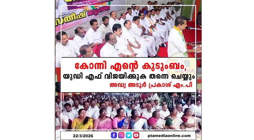 കോന്നി എന്റെ കുടുംബം, യുഡി എഫ് വിജയിക്കുക തന്നെ ചെയ്യും ; അഡ്വ അടൂർ പ്രകാശ് എം.പി