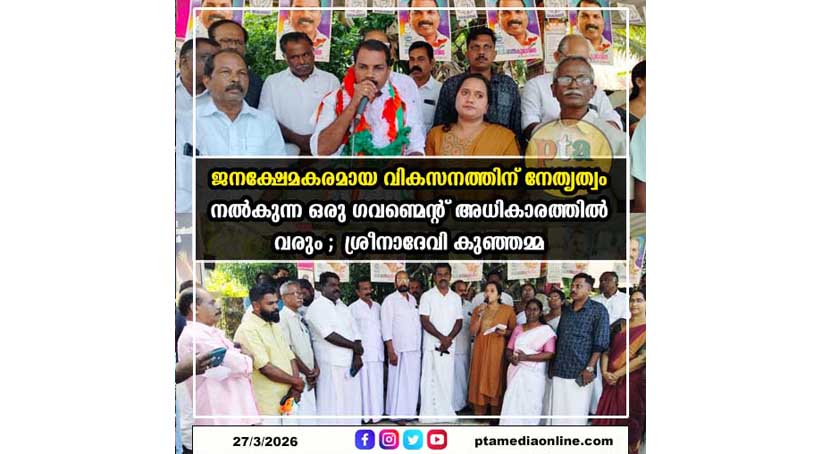 ജനക്ഷേമകരമായ വികസനത്തിന് നേതൃത്വം നൽകുന്ന ഒരു ഗവണ്മെന്റ് അധികാരത്തിൽ വരും ; ശ്രീനാദേവി കുഞ്ഞമ്മ