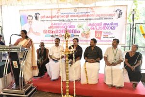 കോന്നി : ശ്രീ കല്ലേലി ഊരാളി അപ്പൂപ്പൻ കാവിലെ പത്താമുദയ മഹോത്സവയുമായി ബന്ധപ്പെട്ട ഏഴാം ഉത്സവം പത്തനംതിട്ട ജില്ലാ പഞ്ചായത്ത് അംഗം എം വി അമ്പിളി ഭദ്രദീപം തെളിയിച്ച് ഉദ്ഘാടനം ചെയ്തു. വെള്ളാള മഹാസഭ കോന്നി താലൂക്ക് യൂണിയൻ പ്രസിഡന്റ് ശ്രീകുമാർ പി ആർ.വിശ്വകർമ്മ സഭ പ്രതിനിധി സുനിൽ വാസ്തു പീഠം എന്നിവർ ഉത്സവ ആശംസകൾ നേർന്നു. കാവ് പ്രസിഡന്റ് അഡ്വ സി വി ശാന്തകുമാർ അധ്യക്ഷത വഹിച്ചു. സെക്രട്ടറി സലിംകുമാർ കല്ലേലി സ്വാഗതം പറഞ്ഞു. അഡ്മിനിസ്ട്രേറ്റീവ് ഓഫീസർ സാബു കുറുമ്പകര നന്ദി രേഖപ്പെടുത്തി.