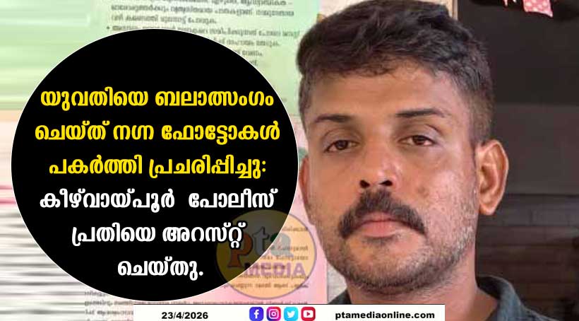 കീഴ്വായ്പൂർ: പരിചയം ഭാവിച്ച് അടുപ്പത്തിലായ യുവതിയെ ഭീഷണിപ്പെടുത്തി ബലാത്സംഗം ചെയ്ത ശേഷം നഗ്ന ഫോട്ടോകൾ പകർത്തുകയും സുഹൃത്തുക്കൾക്കും മറ്റും അയച്ചു കൊടുക്കുകയും ചെയ്ത കേസിൽ പ്രതിയെ കീഴ്വായ്പൂർ പോലീസ് അറസ്റ്റ് ചെയ്തു.