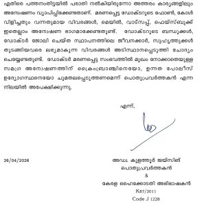 ദിവസങ്ങൾക്ക് മുമ്പ് ഹോസ്റ്റൽ മുറിയിൽ മരിച്ച നിലയിൽ കണ്ടെത്തിയ സംഭവം വെറും അസ്വാഭാവിക മരണമായി എഴുതിത്തള്ളി കേസ് അവസാനിപ്പിക്കാനാണ് നിലവിൽ നീക്കം നടക്കുന്നതെന്ന് പരാതിയിൽ പറയുന്നു. സംഭവവുമായി ബന്ധപ്പെട്ട് പലരുടെയും മൊഴികൾ രേഖപ്പെടുത്തിയെന്ന് അവകാശപ്പെടുമ്പോഴും, സംശയനിഴലിലുള്ളവരെ കൃത്യമായ ചോദ്യം ചെയ്യലിന് വിധേയമാക്കിയിട്ടില്ലെന്നത് ദുരൂഹമാണ്.