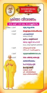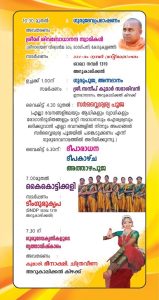 *അഷ്ടദ്രവ്യമഹാഗണപതിഹോമം * ഗുരുപൂജ *ഗുരുദേവ പ്രഭാഷണം * അന്നദാനം * ദീപാരാധന *ദീപക്കാഴ്ച * നൃത്തസന്ധ്യ * കൈകൊട്ടിക്കളി * വയലിൻ ഫ്യൂഷൻ തുടങ്ങിയ പരിപാടികൾ ആഘോഷത്തിന്റെ ഭാഗമായി നടക്കും.