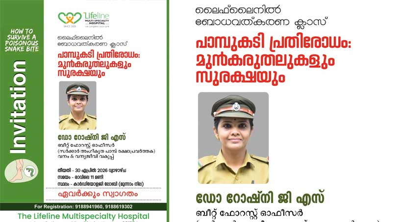 പാമ്പുകടി പ്രതിരോധം – ലൈഫ് ലൈൻ ആശുപത്രിയിൽ ബോധവത്കരണ പരിപാടി ഏപ്രിൽ 30 ന്
